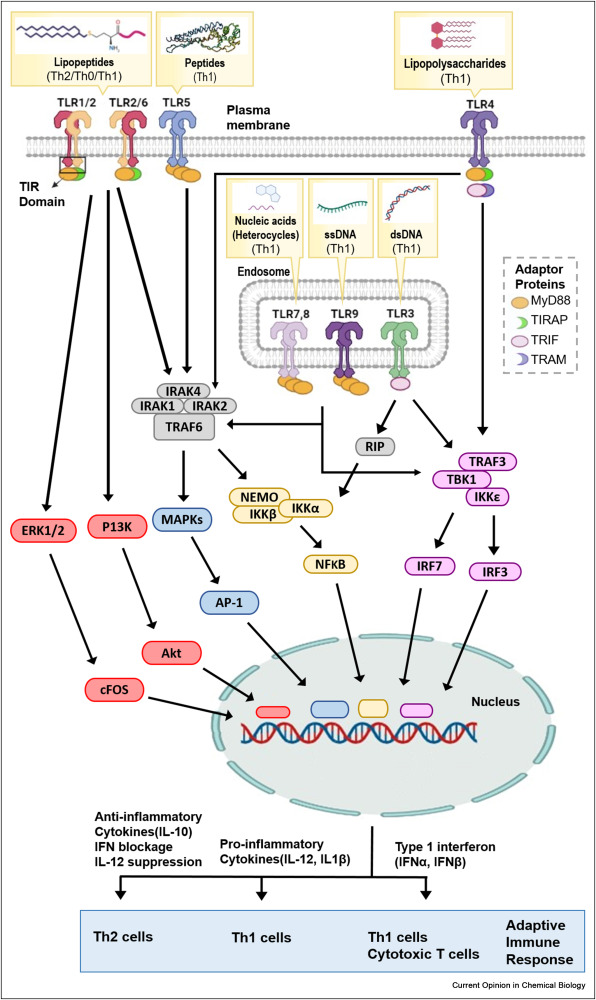 每個(gè) TLR 都有自己特定的組織定位和下游基因信號通路,數(shù)百種靶向各種 TLR 的配體已被鑒定并表征為疫苗佐劑,這為研究人員提供了精確定制具有特定免疫作用的佐劑的機(jī)會。