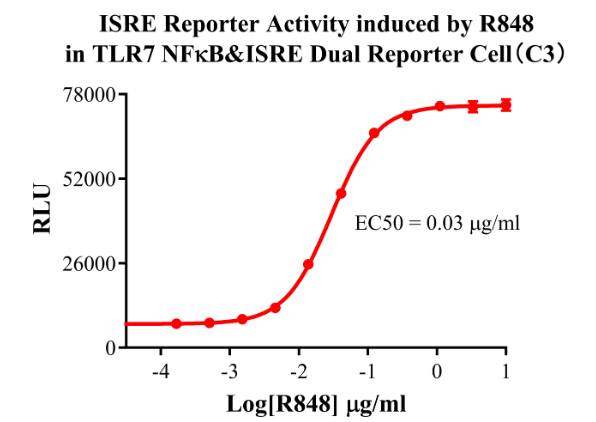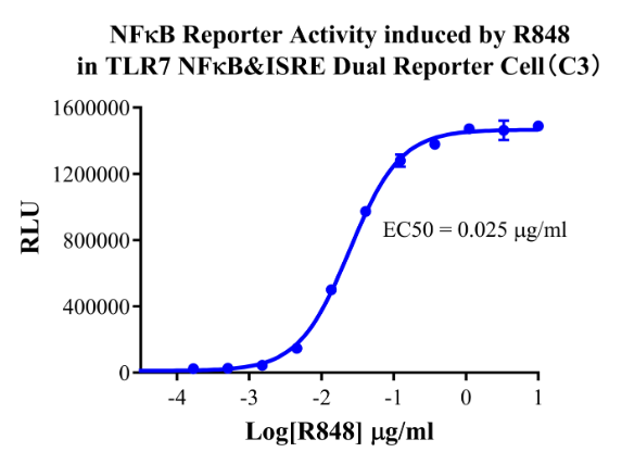 Figure 7.NFκB Reporter Activity induced by R848 in TLR7 NFκB&ISRE Dual Reporter Cell(C3).