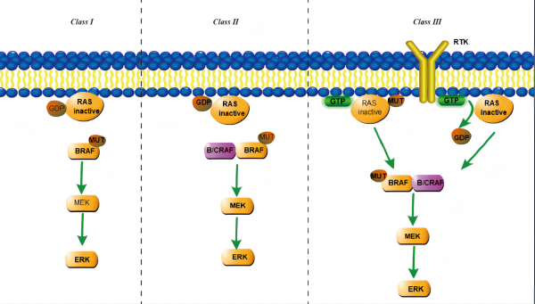 BRAF突變根據(jù)活化的機(jī)制不同,分為三種類(lèi)型: