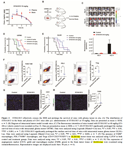 文章題目:Preclinical and early clinical studies of a novel compound SYHA1813 that efficiently crosses the blood-brain barrier and exhibits potent activity against glioblastoma.