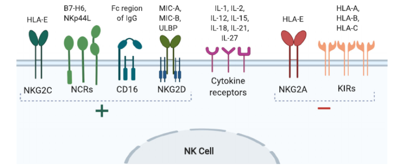NKG2A是單跨膜的II型膜糖蛋白的C型凝集素超家族的成員,包含胞內(nèi)域、跨膜域和細(xì)胞外凝集素樣結(jié)構(gòu)域。胞內(nèi)域有兩個ITIMs,參與抑制信號轉(zhuǎn)導(dǎo)。NKG2A是自然殺傷細(xì)胞(NK)和CD8+ T細(xì)胞的關(guān)鍵免疫檢查點。NKG2A與CD94作為異二聚體表達(dá),CD94也屬于C型凝集素超家族,NKG2A/CD94異二聚體受體的配體是非經(jīng)典MHC I類分子。結(jié)合后,NKG2A/CD94向NK細(xì)胞和CD8+ T細(xì)胞傳遞抑制信號,阻斷NKG2A可有效釋放這些細(xì)胞毒性淋巴細(xì)胞的功能。
