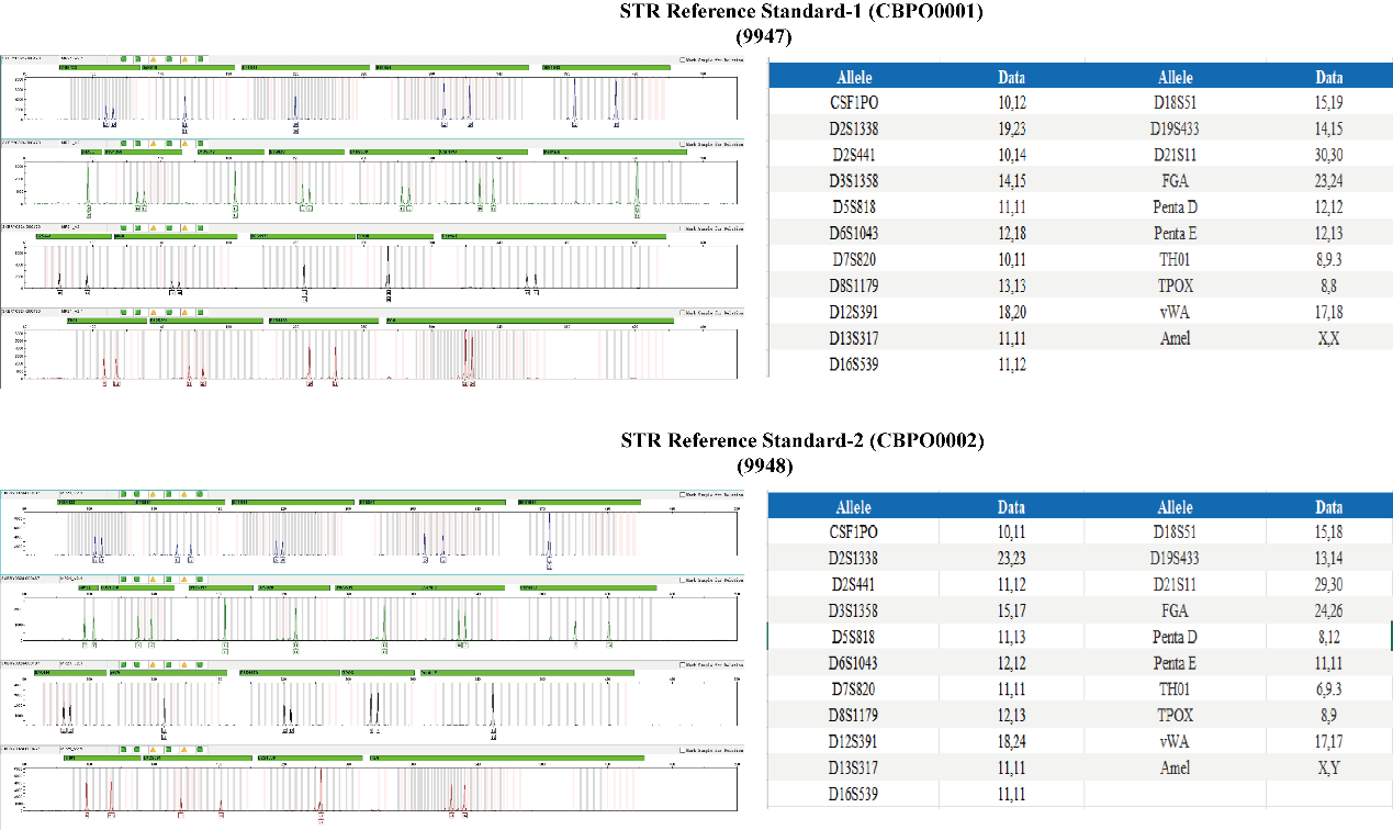 1. 常染色體系列,分為男性(9948)和女性(9947)兩個標(biāo)準(zhǔn)品:包含常用的20個STR位點(含13個CODIS 位點) 和一個性別位點Amelogenin。